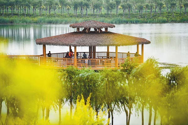 近日,位于天津市西青区境内的西青生态廊道全部建设完毕。据了解,西青生态廊道总面积约5平方公里,新栽植树木13万余株,片区内湿地湖岛相间、阡陌稻田交错,集林、田、水、草为一体。图为天津西青生态廊道一景。