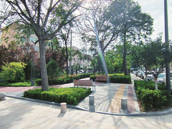 平凉市利用拆违拆临腾退土地,精心打造了占地约1.5亩的“崆峒小园·福乐园”口袋公园,以满足周边15分钟生活圈内市民日常休闲活动的需求。口袋公园依托场地现状地形,运用具有现代感的折线和几何形式进行设计构图,丰富绿化层次,在满足市民日常活动需求的同时,形成较好的城市道路绿化立面。同时充分融入海绵城市设计理念,以“绿色”措施来组织排水,以“慢排缓释”和“源头分散”的方式对水资源进行合理利用。
